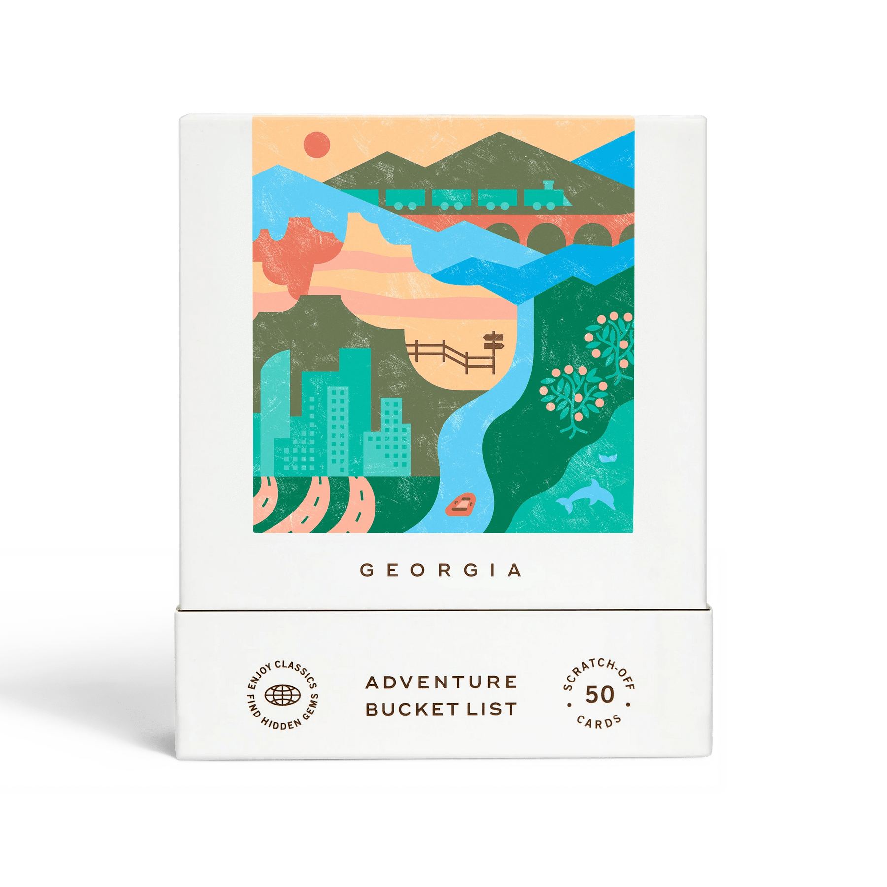 The Georgia Adventure Bucket List has activities all within the state. Each card has a city name at the top, and when you scratch it off, you reveal your adventure!