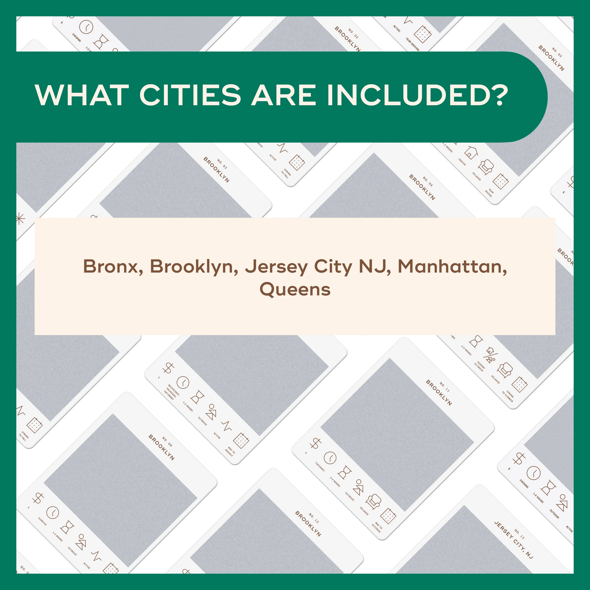 Each card has icons at the bottom that give you a sneak peek into the adventure – indicating things like the ideal season, duration, and approximate cost. Simply pick a card that aligns with your plans, give it a scratch, and voila – your next New York City adventure is revealed!